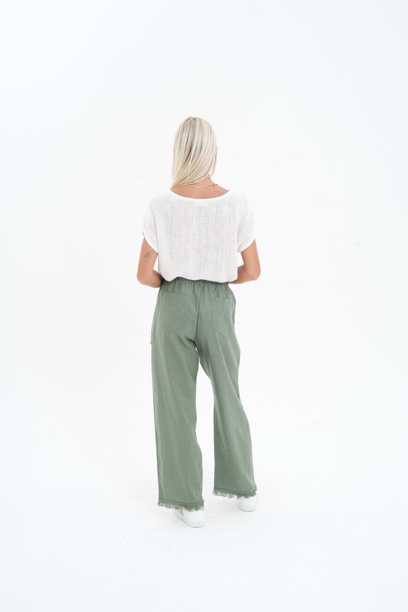 Introducing the stylish and comfortable Carbon Joshua Frayed Linen Pant.
