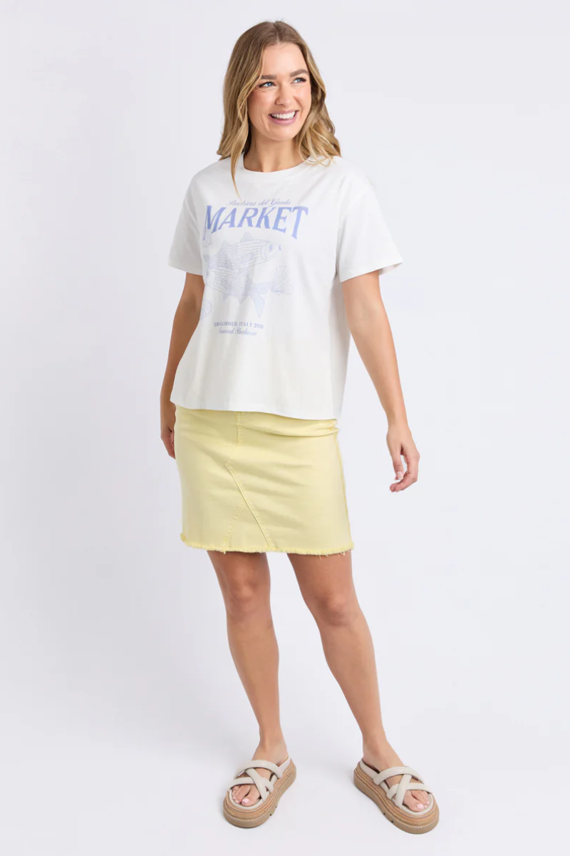 A soft, easygoing tee with a relaxed fit and a lived-in vintage white finish. Simple, comfortable, and effortlessly stylish—perfect for pairing with denim, shorts, or your favourite casual layers.