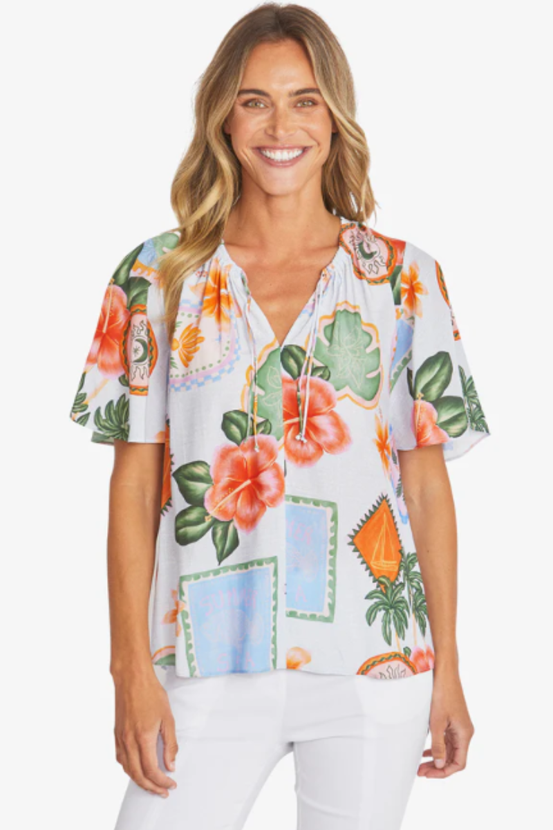 The Tahiti Top brings easy‑going island energy to your wardrobe with a relaxed shape and breezy fabric in a vibrant multicolour print. Designed for warm‑weather comfort, it pairs effortlessly with shorts, skirts, or linen pants for laid‑back days or sunny get‑togethers.