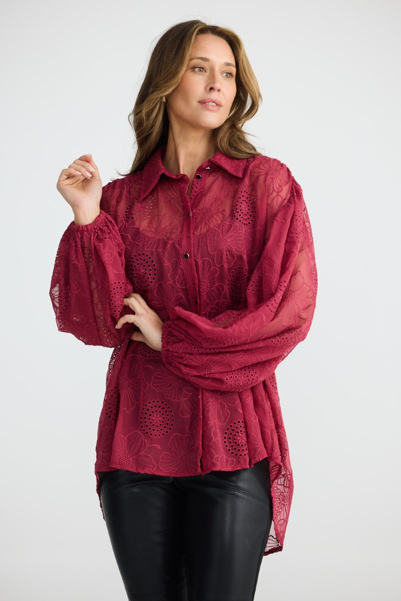 Get ready to make a statement with the Brave + True Eden Shirt. This sheer design features a collared neckline and a button down front for a sophisticated touch. Its elastic hem and relaxed fit make it a comfortable choice, while the lightweight soft chiffon fabric adds a touch of elegance. Made with 100% polyester, this shirt will surely become a staple in your wardrobe.